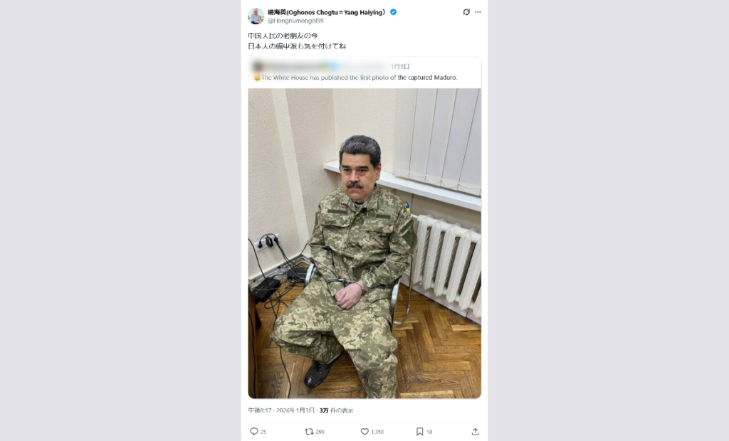静岡大学教授の楊海英(大野旭)氏が海外ユーザーの投稿を引用して投稿