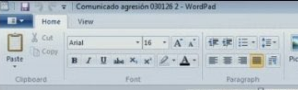 表示されている文面はベネズエラ大統領府や与党・統一社会党(PSUV)が公開したものと同じだが、この声明文をワードパッド上に表示したのがベネズエラ政府等か、それを報じたメディアなのかは定かではない。