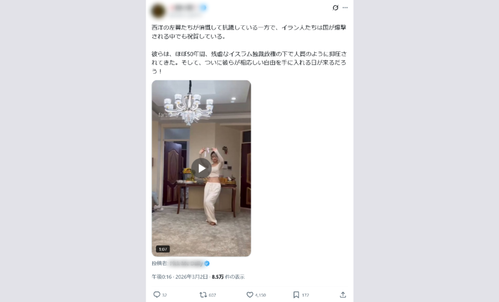 イランへの攻撃に対し、イラン人の女性が踊って「祝賀している」とする動画。
