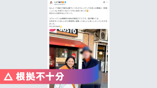 「スウェーデンは刑務所の98%が移民」は根拠不十分 参政候補者と県連が投稿